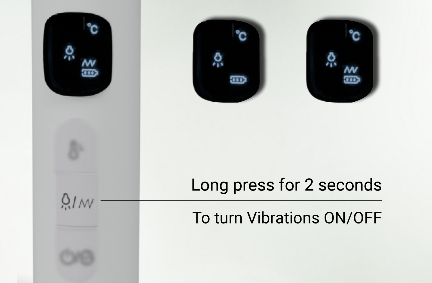 Power on your OcuBella and select the Vibrations mode by pressing the mode button until the vibration icon appears.