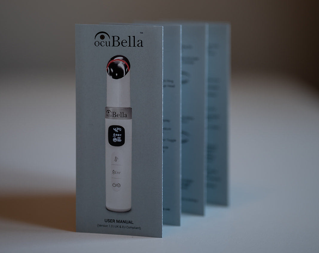 Ocubella is a 4-in-1 eyelid massager that helps relieve dry eyes, eye fatigue, puffiness, and screen-related strain. It uses therapeutic heat, gentle vibration, EMS (Electric Muscle Stimulation), and LED light therapy to restore comfort and promote meibomian gland function—the root of healthy tear film.